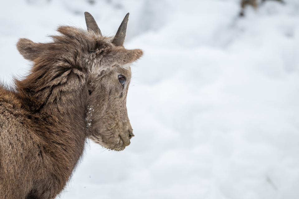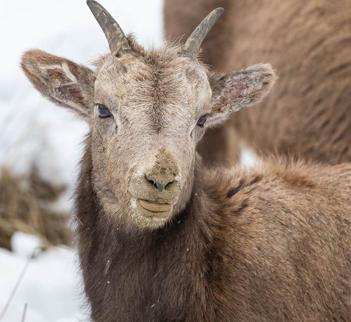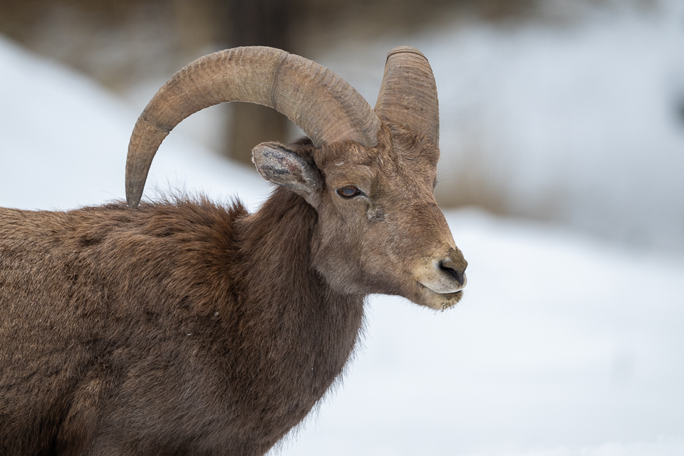 The day we saw the bighorn sheep, we also saw some other fun animals. Otters running and sliding on the ice and ducking in and out of the frigid water with their friends, the swans. Bald Eagles maybe digesting or waiting for their next meal to come along. Clark’s Nutcrackers foraging for their pine seed caches. More swans and a group of partridges near the road as the sun finally started to show up.