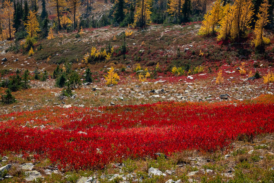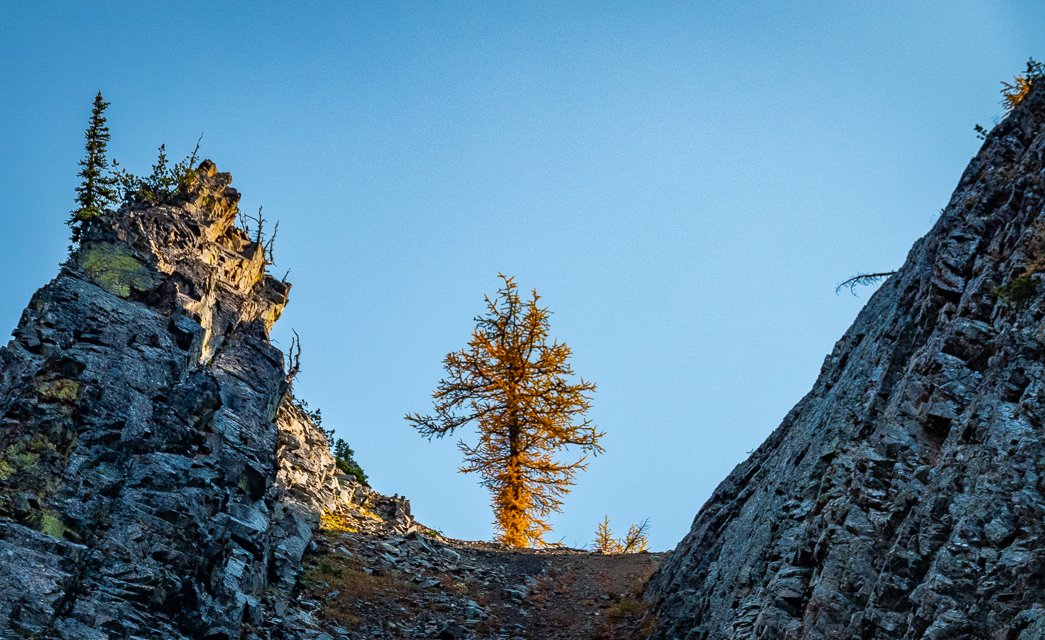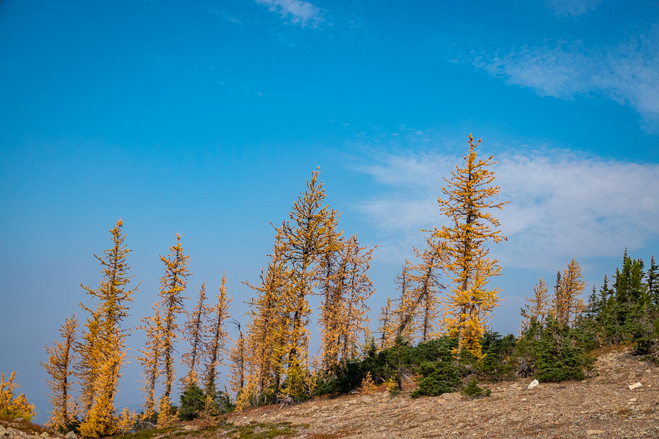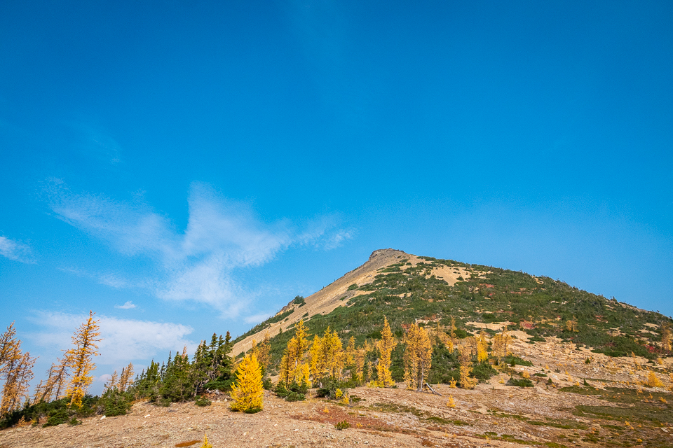 This is my favorite trail, I’m pretty sure. I can return to it multiple times during a hiking season. It does have the very worst road though. It’s a place where the sub alpine larches are enchanting in their early summer greens and amazing when they turn golden in the fall. Pikas are frequently heard and sometimes seen while crossing the talus slopes. Earlier in the year marmots let loose with piercing calls to frighten even the bravest dogs and people too. Now they are underground. The pikas continue to harvest greens to dry in their ‘hay’ piles and then store under the rocks for the long cold winter soon to come.