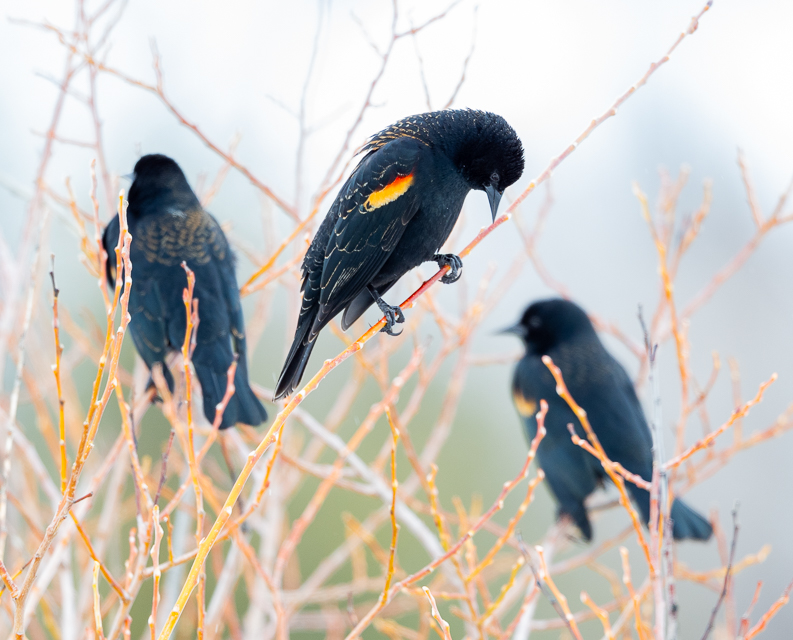 Here it is, March 3 and spring birds are already arriving. Here I am catching up on last month’s birds! Pileated Woodpecker, Red-breasted Nuthatch, Steller’s Jay, three kinds of finches (Red Crossbill, American Goldfinch and Pine Siskin) and Red-winged Blackbirds (who have been here all winter), note that they are all males. I don’t know where the females spend the winter. And a Red-tailed Hawk. Backyard birds.