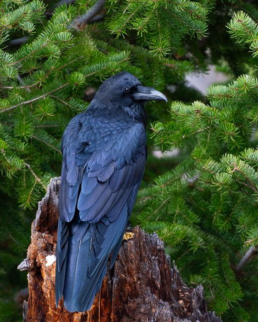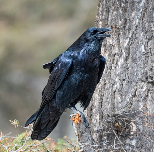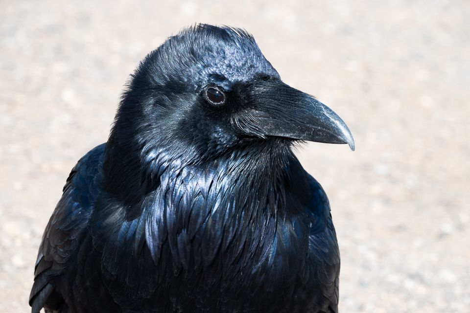 Am I the only person who goes to Yellowstone National Park and returns with hundreds of photos of ravens? Why so many? Ravens in the park are very habituated to people. They see parking lots as sources of food – either crumbs left behind or as hand outs from unknowing tourists. I was kneeling down photographing one bird when they kept going over to a car and I realized that the man inside was dropping potato chips for them. Here is a post from my last trip to Yellowstone.