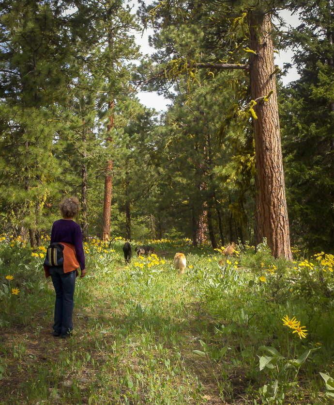 I knew there were quite a few campgrounds in the area but apparently they close most of them at the end of September. One campground was still open on the lakeshore so that’s where I set up camp. Sky was delighted to have a big lake and Luna was happy to have colder weather. The elevation was about 6500′ and towering mountains arose on the far side of the lake. I read that the highest one was over 12,000′. Snow had fallen the night before we arrived. We visited an old mining area near Stanley with its discarded equipment and dilapidated buildings. Sadly, all of the interpretive signs had been removed. We also enjoyed a hike up Fishhook Creek.