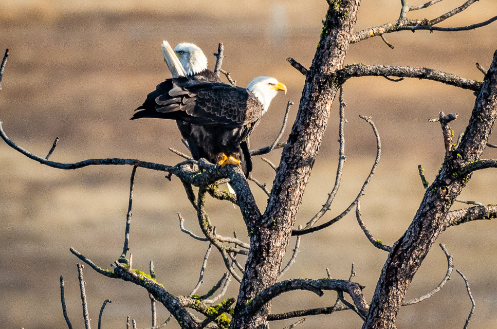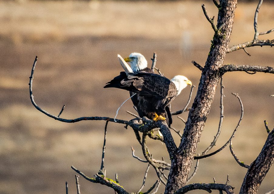 This pair of Bald Eagles enjoyed some morning sunshine on one of the snags in front of our house recently. I have been seeing a lot of eagles in the valley recently. I think they are eating spawned out salmon.