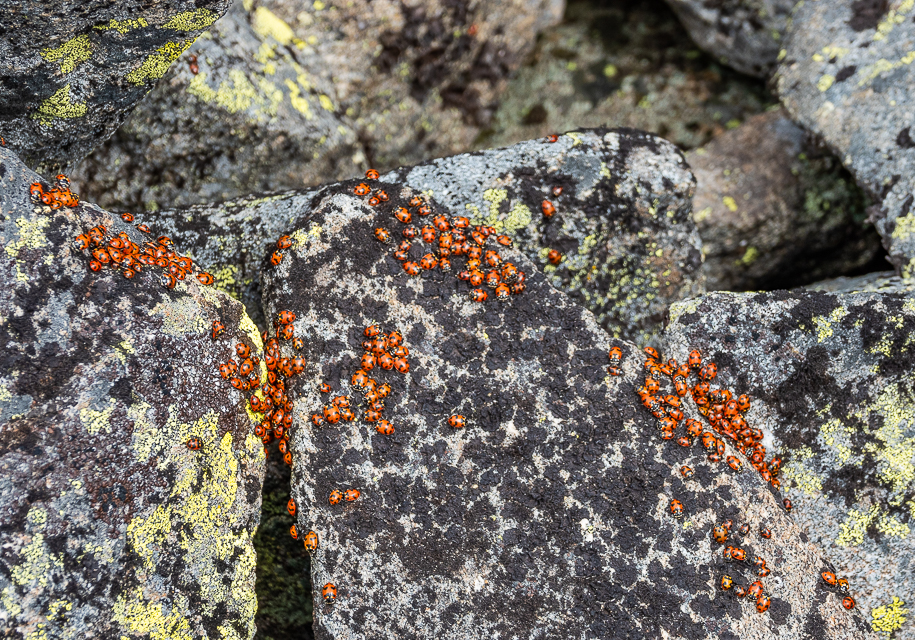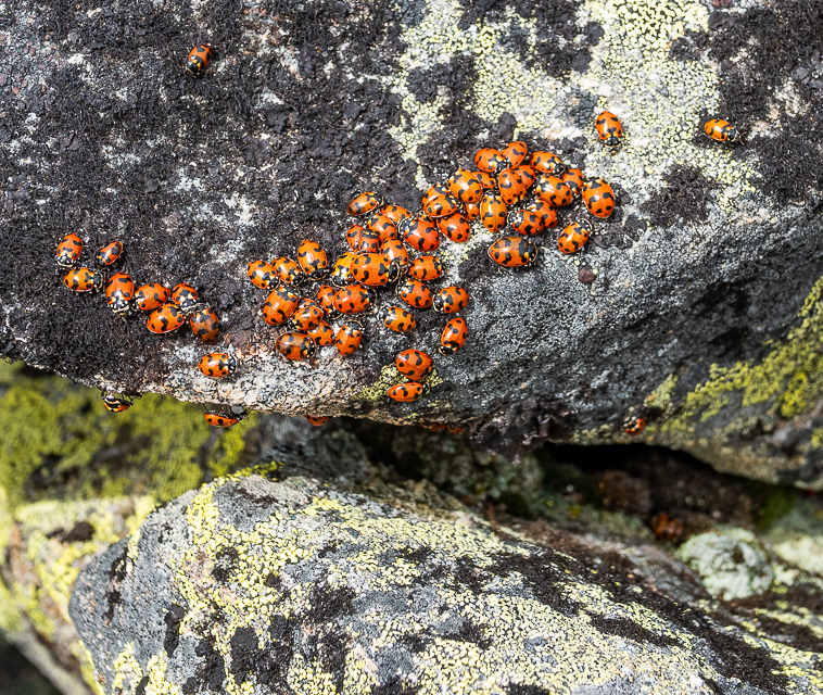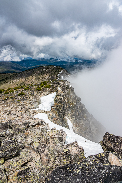 We got out in the mountains this past week for a really pleasant hike. The air was cool and fresh. It wasn’t windy which was a mixed blessing. In some places, the mosquitoes were quite annoying but they thinned out after we got above the trees. Clark’s Nutcrackers were everywhere and Horned Larks were singing from lots of rocky perches. Ladybugs were emerging from the rocks and once again I wonder, what do they do all winter? Sky found a stick and she posed, on her own, in front of an old growth juniper, for a portrait. And the clouds were amazing! Fog filled the valleys to the north and east, eliminating half the views but it would pour up over the ridge line making outstanding aerial displays! We found big piles of black bear poop. I wonder what it was eating? The snow only recently melted so there were few flowers. We will have to return soon! With the warm weather, they will pop out in a hurry.
