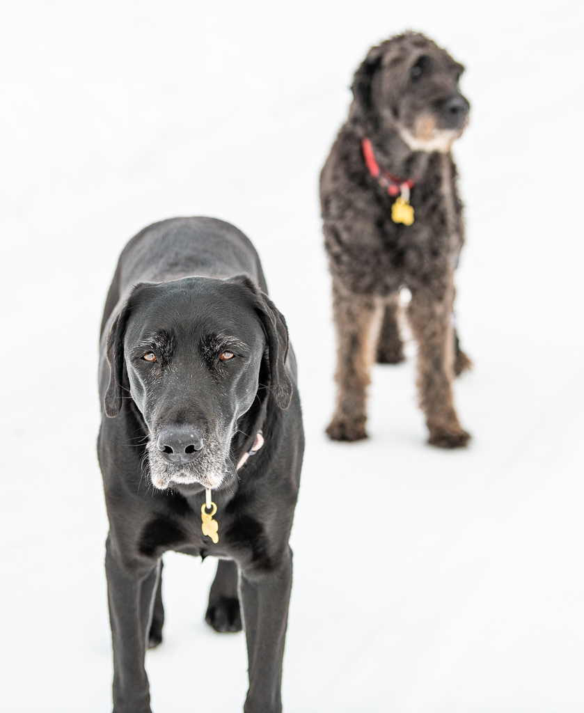 I think they are tired of winter already. Luna’s klunkr slips if it is too icy. Sky cut her toe last weekend and also has a persistent ear infection. We can only walk where it is plowed or really packed down. Today we walked down the road instead of up the road and that was mildly more entertaining for them.