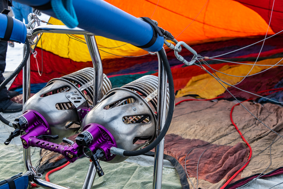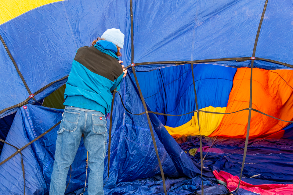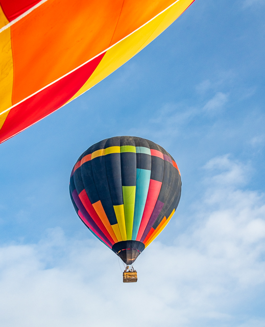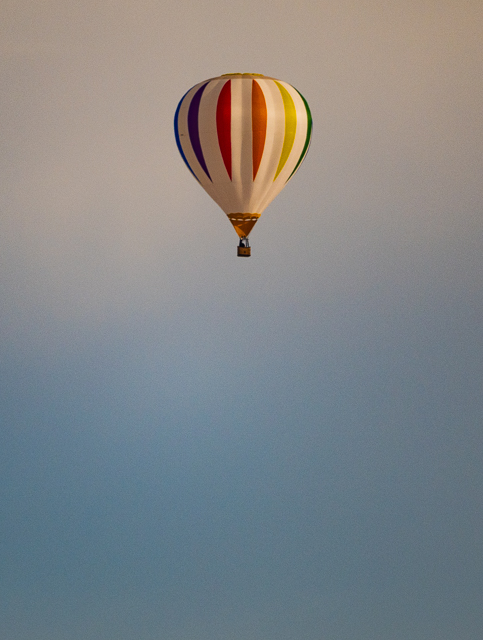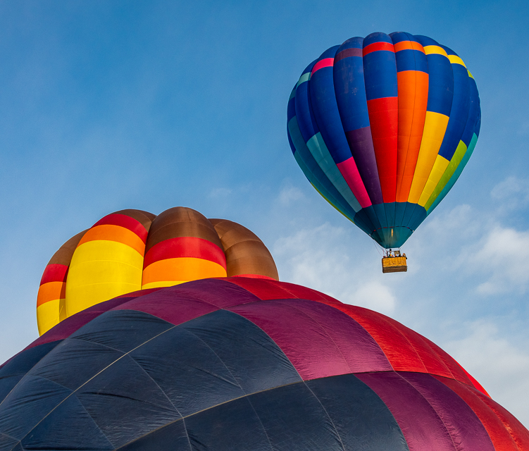 They aim to start inflating about 7 am. Before that, there is a lot of work to do, unpacking the balloons and getting the lines straightened out, hooking up the baskets, testing the burners and so on. There were lots of spectators armed with cameras and cell phones. Many people were signed up for rides too. Once the balloons were up in the air, they did not move very far as the air currents were slow on Friday. A couple made it as far as the airport to land in the nearby fields.