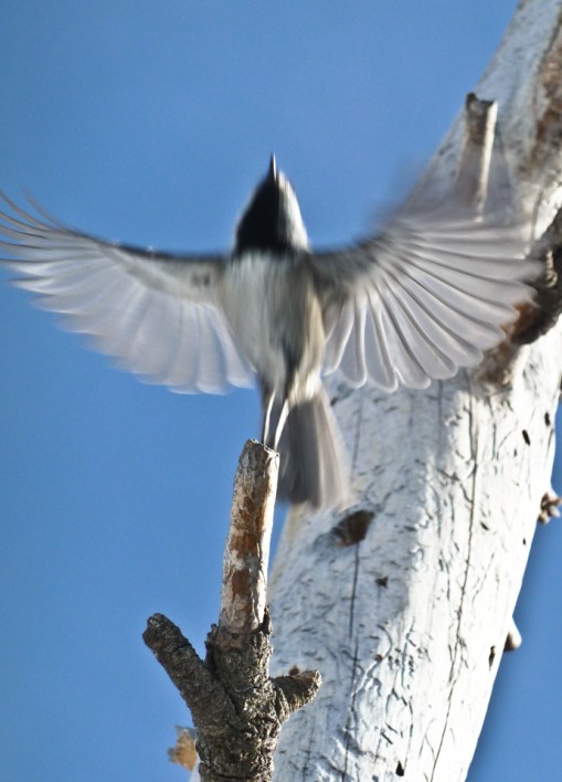 There’s one of those chickadees. They do not use our nest boxes for nesting although they do use them for winter night roosts.