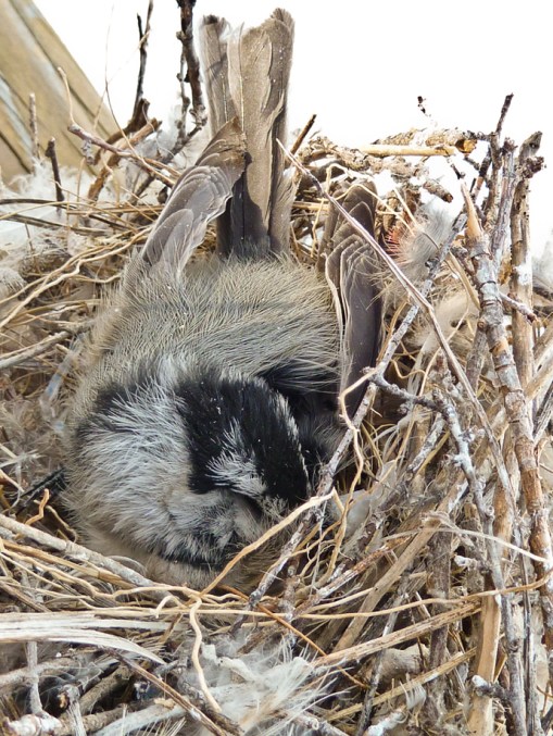 This tiny chickadee must have been sick and died over the winter in one of the boxes.
